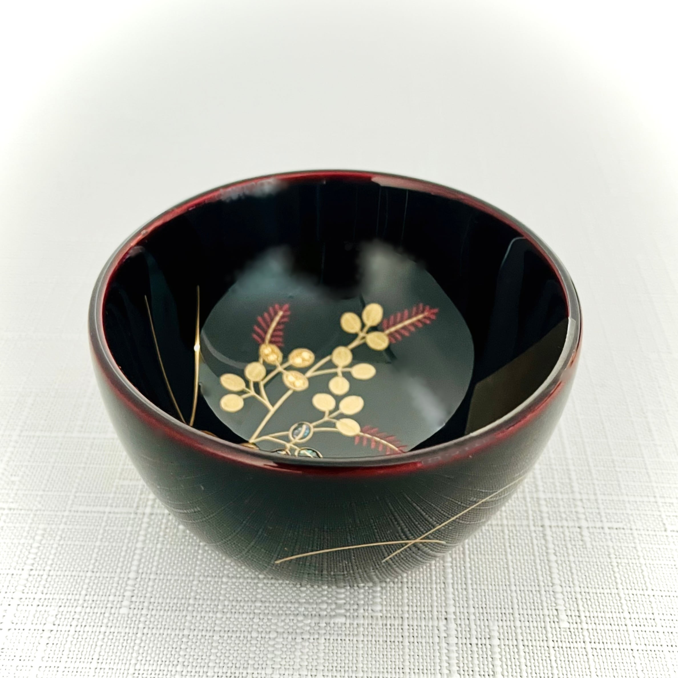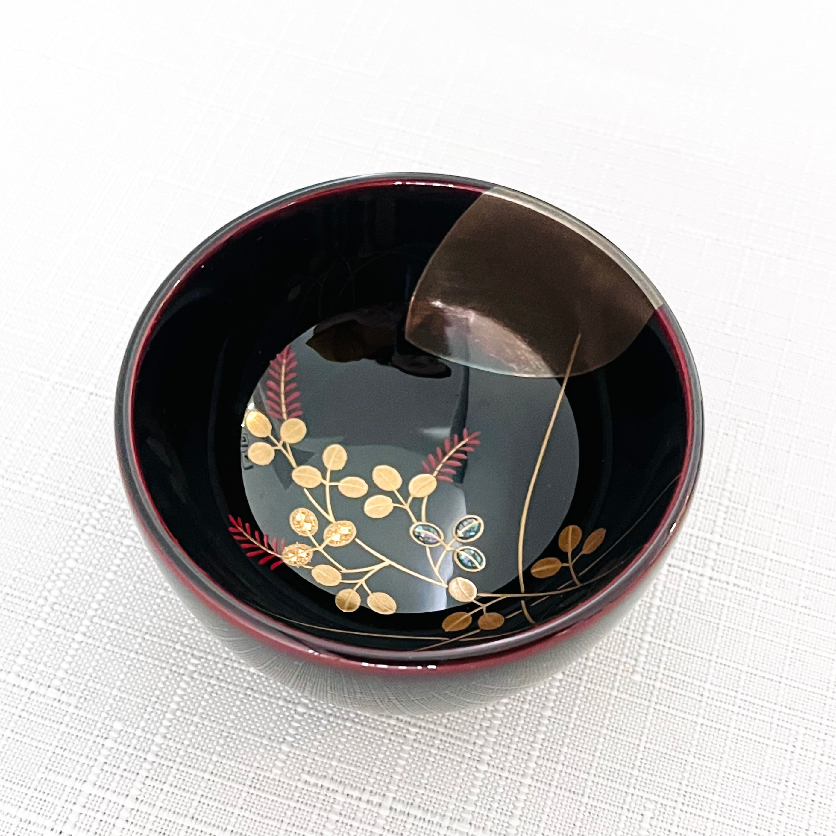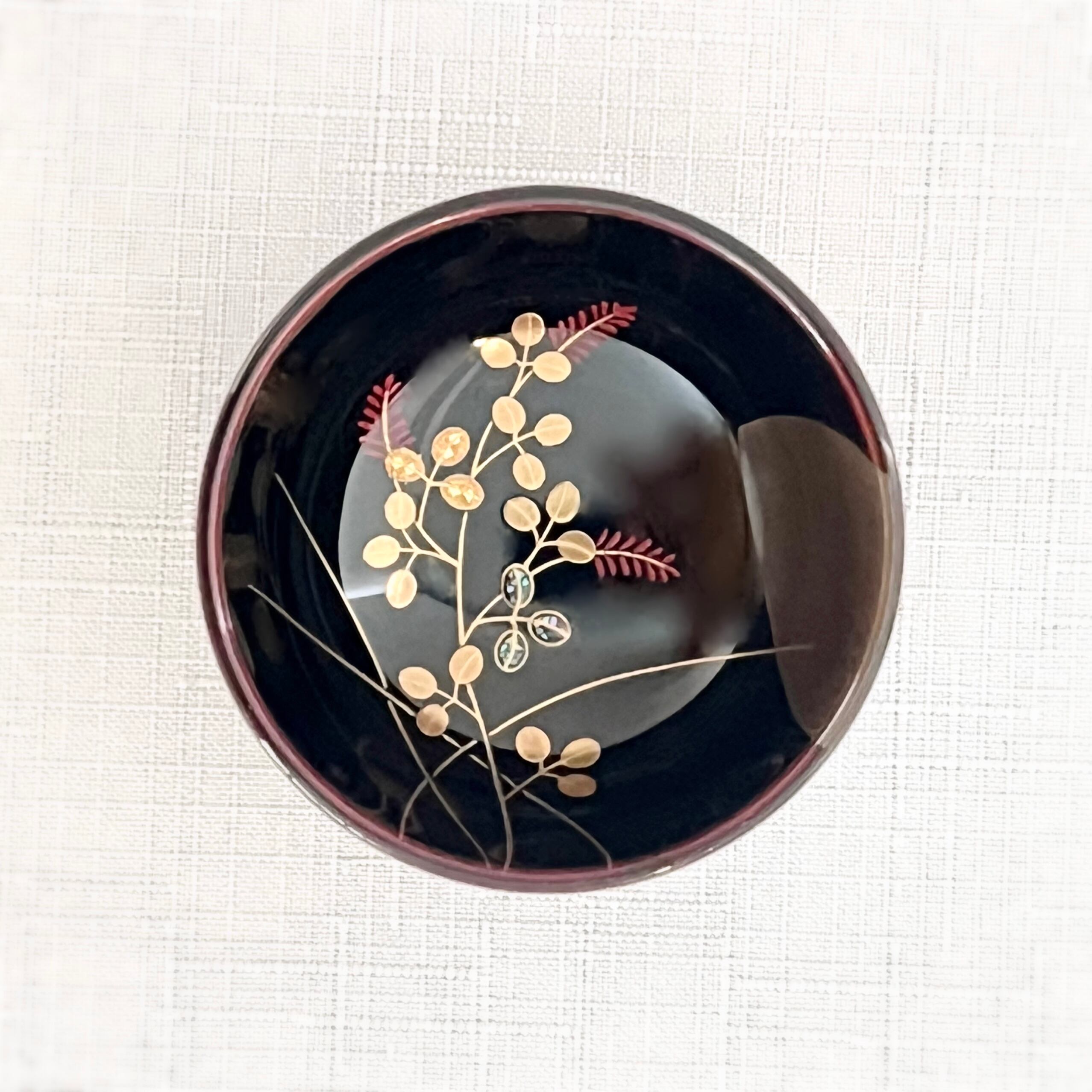 【輪島塗】 ぐい呑み(溜め・蒔絵:萩に月)
