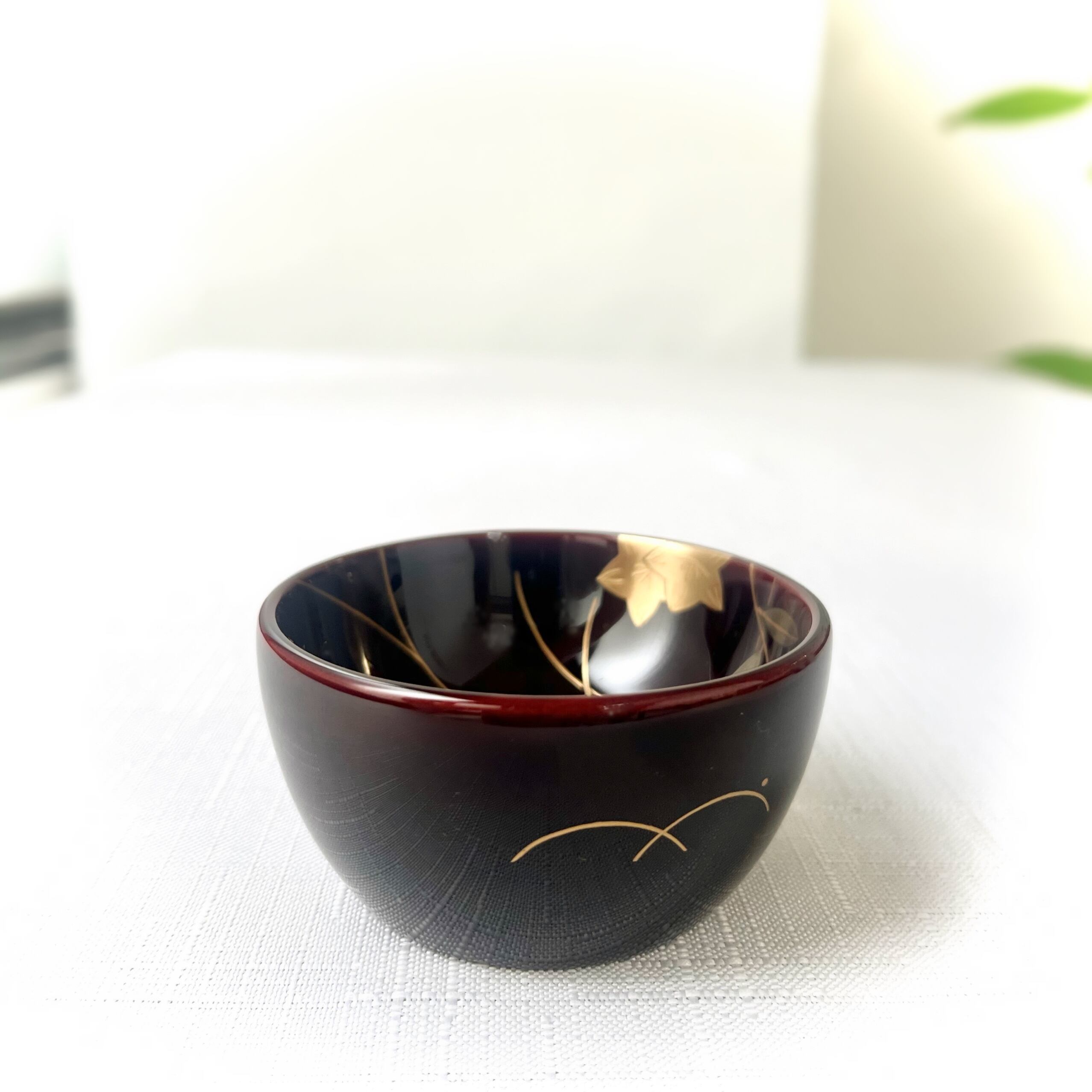 深い溜塗に浮かび上がる金の線描が、涼やかな秋の風を思わせる優しい輪島塗の酒器です。