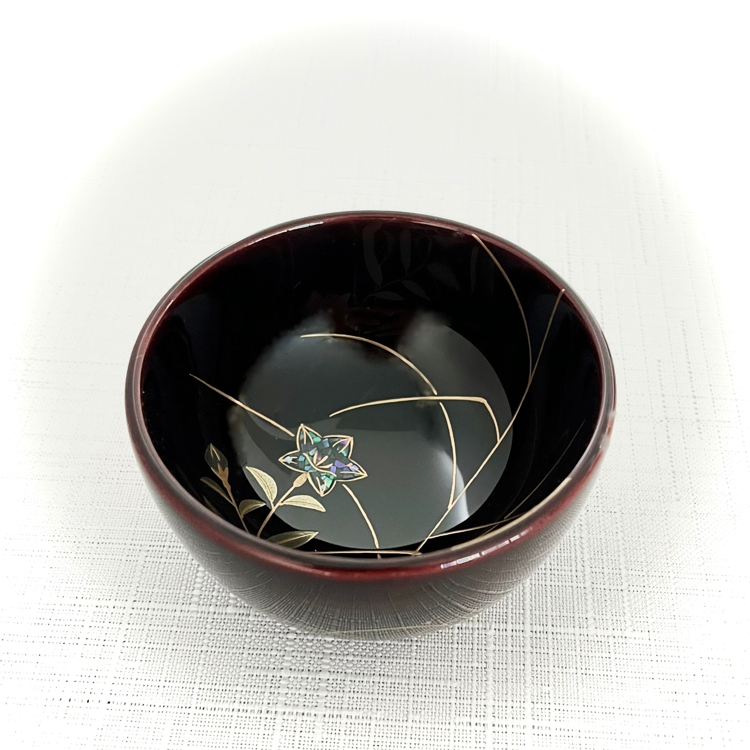 【輪島塗】 ぐい呑み(溜め・蒔絵:桔梗)